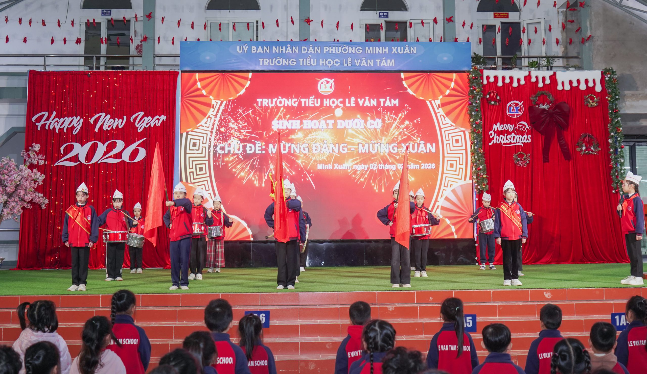 Sáng nay, trong tiết trời mưa xuân mang theo hơi thở của tết đến xuân về, thầy và trò Trường Tiểu học Lê Văn Tám đã cùng nhau sinh hoạt dưới cờ đầy ý nghĩa với chủ đề: “Mừng Đảng – Mừng Xuân”.
