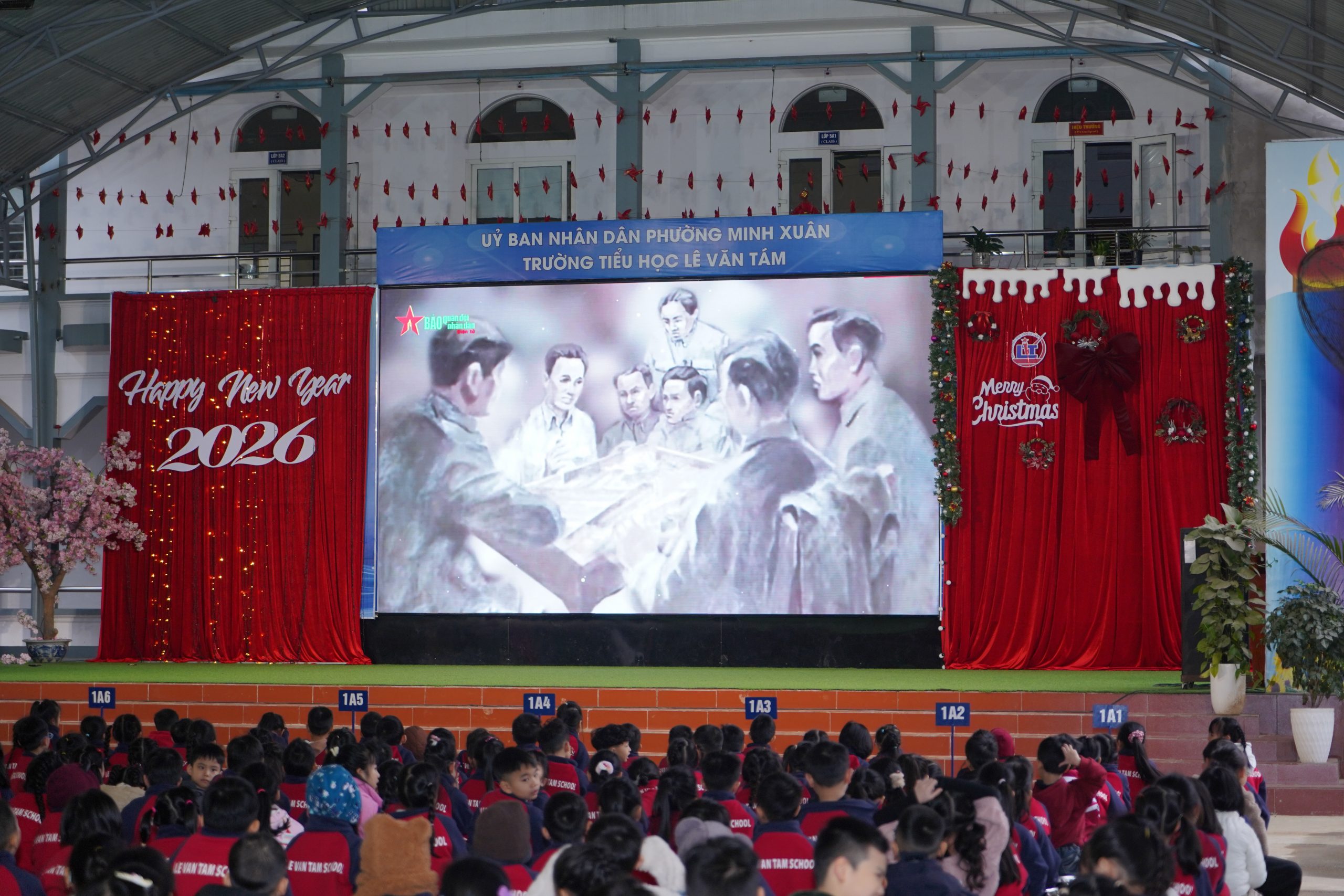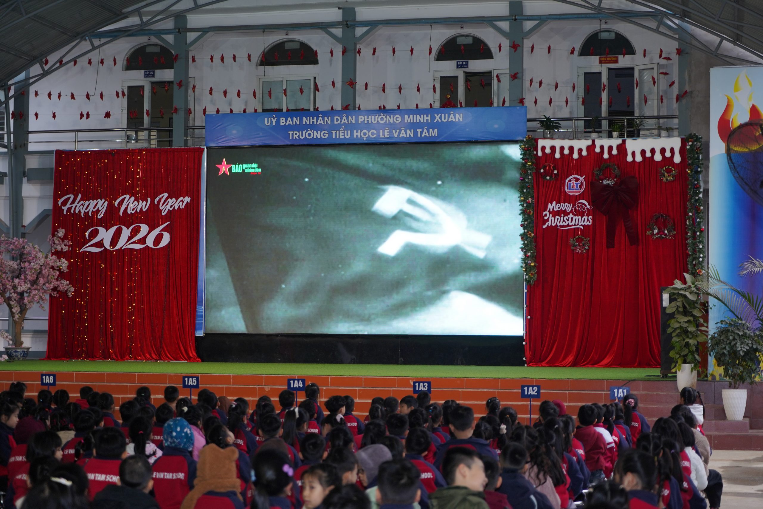 Hướng tới kỷ niệm 96 năm Ngày thành lập Đảng Cộng sản Việt Nam (03/02/1930 – 03/02/2026), các em học sinh đã cùng nhau xem những thước phim tư liệu quý giá. Những hình ảnh lịch sử về ngày 3/2/1930 đã khơi dậy lòng tự hào dân tộc và lòng biết ơn sâu sắc trong mỗi trái tim nhỏ bé dưới mái trường này.